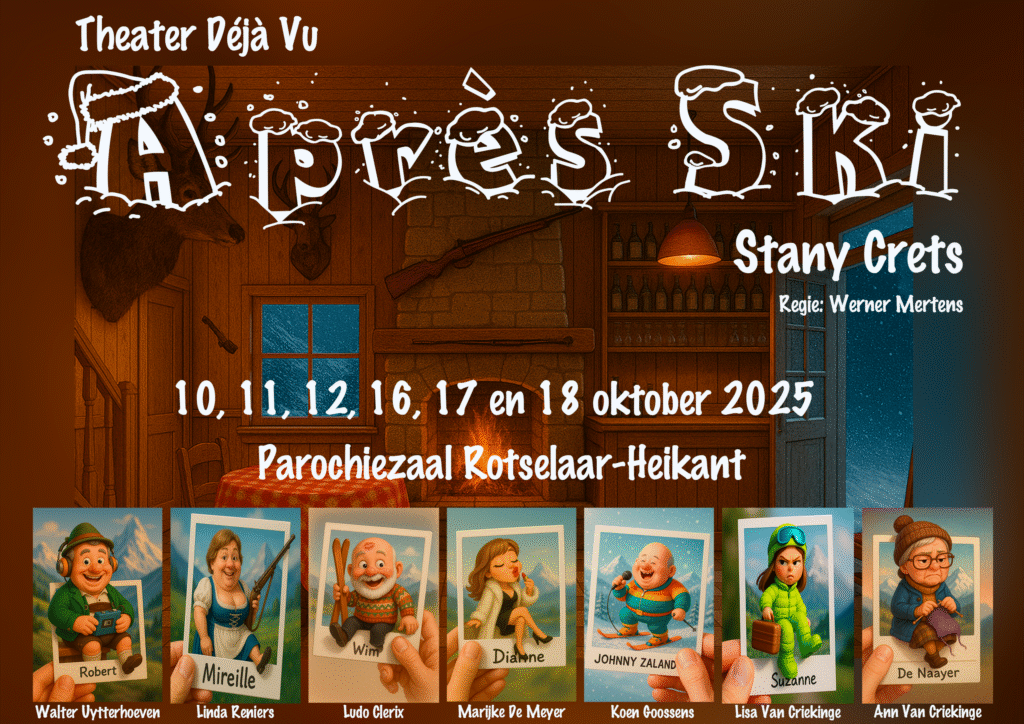 Wanneer de herfst in het land is, beginnen we bij Theater Déjà Vu volop te dromen van de komende winter en het opsnuiven van frisse lucht van besneeuwde bergtoppen! Dat wordt ongetwijfeld om ter meest Schnaps naar binnen gieten, vooraan in de polonaise proberen te belanden of die val van een paar uur geleden proberen te verkopen aan de bar als een spectaculaire truc…